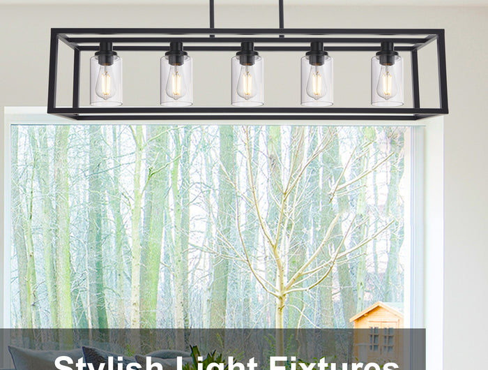 Combine metal openwork rectangular frame with clear glass shade outlines the beauty of geometry. The entire fixture is made up of clean linear square tube will bring simple but stylish design to your home.