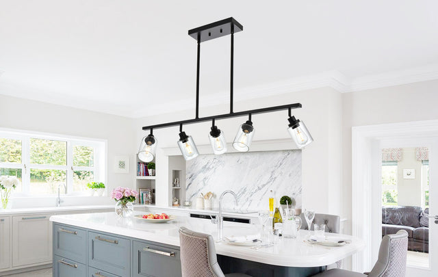 Combine metal openwork rectangular frame with clear glass shade outlines the beauty of geometry. The entire fixture is made up of clean linear square tube will bring simple but stylish design to your home.
