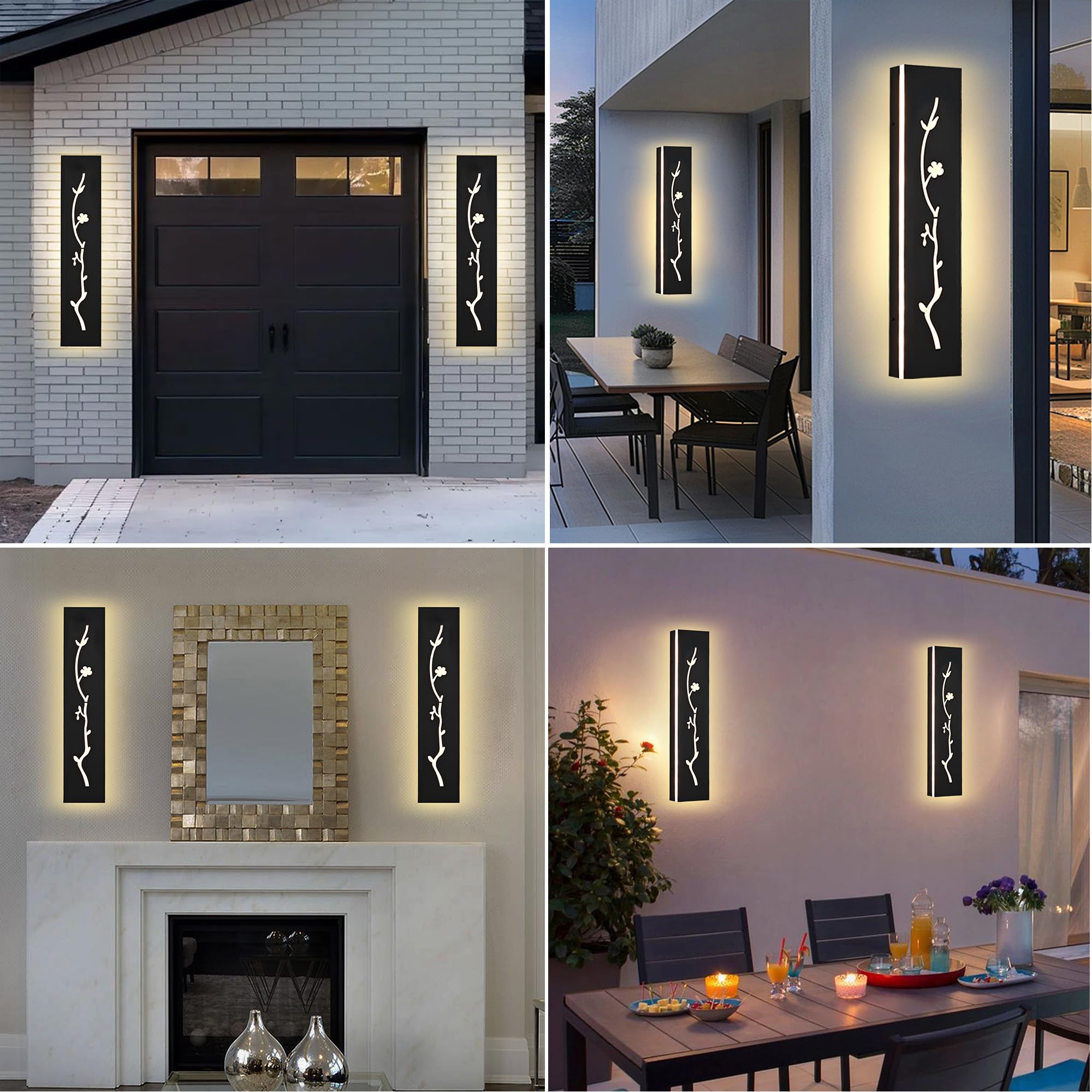 Elegant Flower Pattern Design: This outdoor wall light features frosted white acrylic surround a matte black metal rectangular frame... Read more