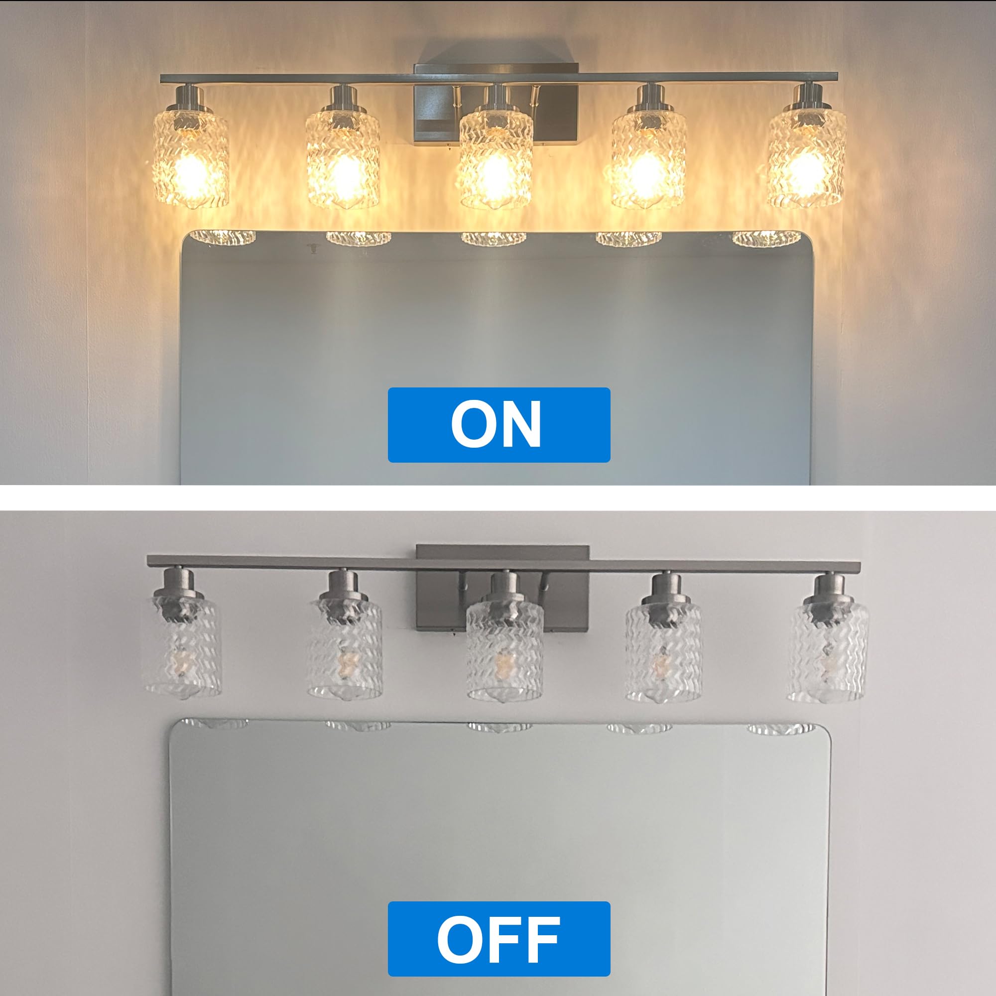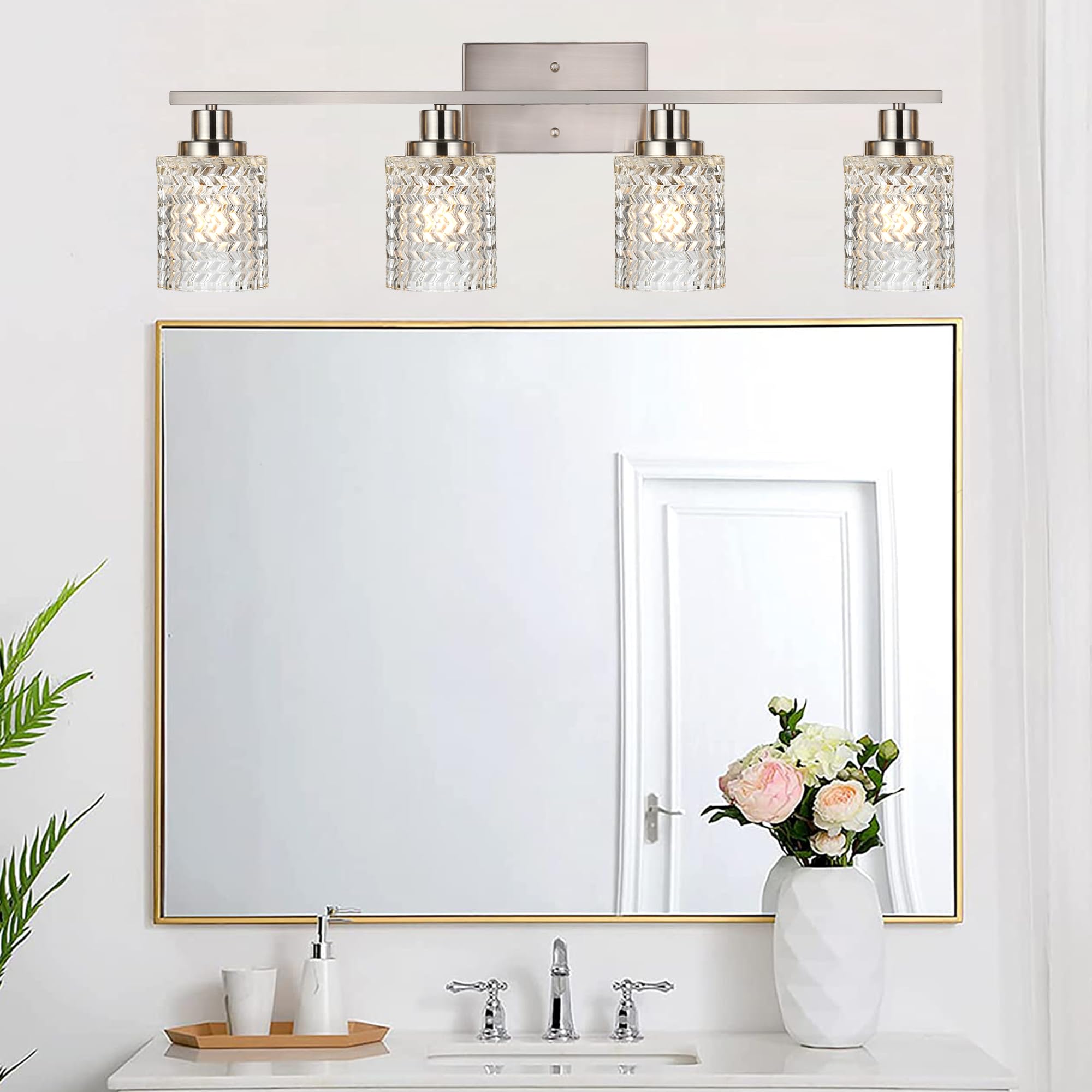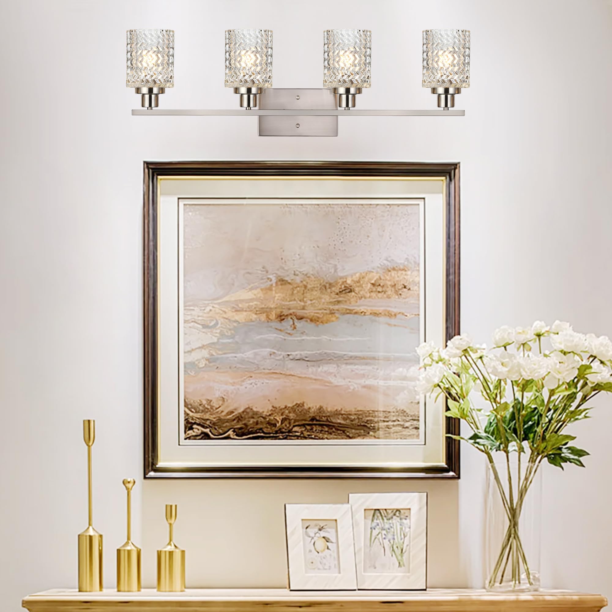 MELUCEE 4 Lights Brushed Nickel Vanity Light Modern Bathroom Light Fixtures with Hammered Glass Shade, Indoor Metal Wall Lights for Powder Room Hallway Kitchen, E26 Base