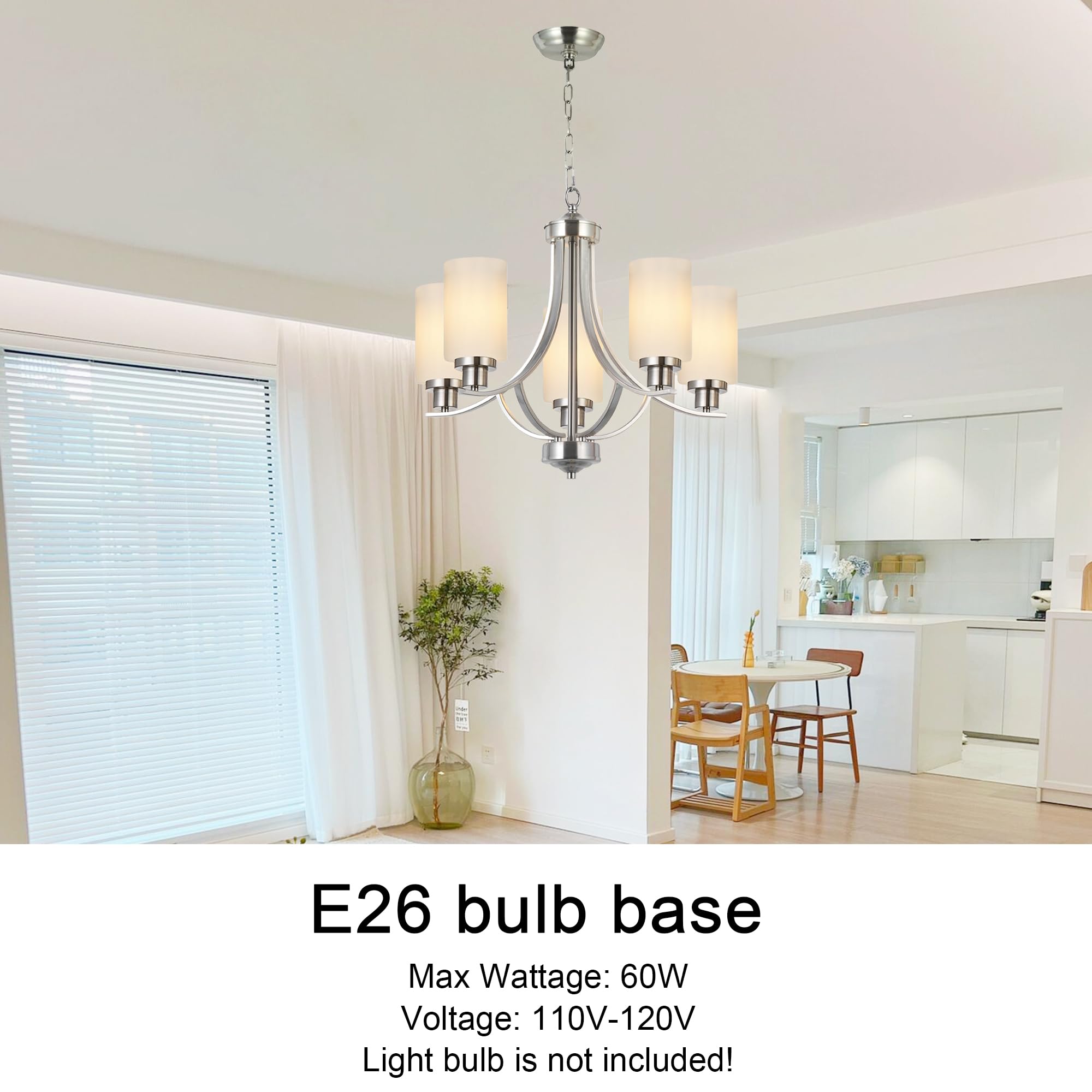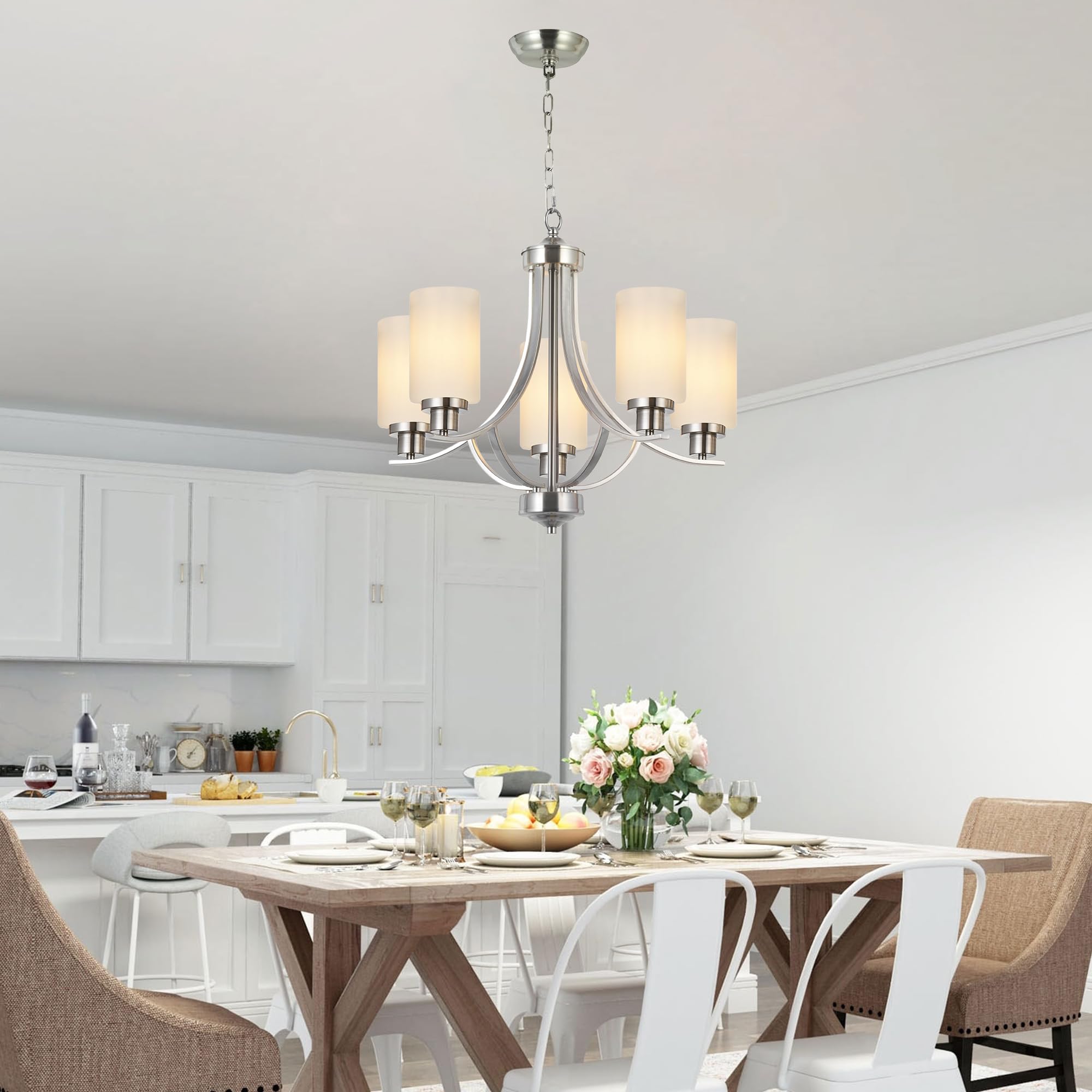 MELUCEE 5 Lights Chandeliers for Dining Room Traditional Chandelier Classic Pendant Light Brushed Nickel with Milky White Glass Shade, Mid Century Modern Chandelier for Kitchen Foyer Bedroom