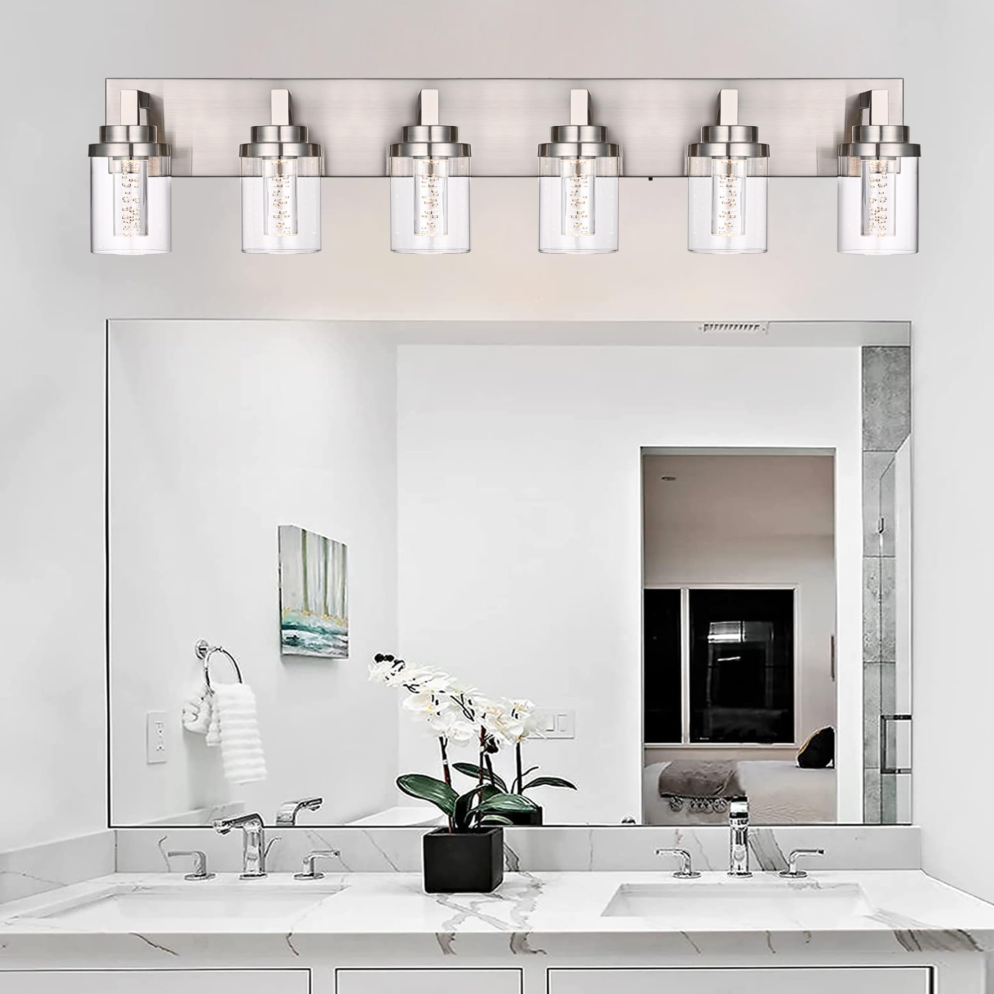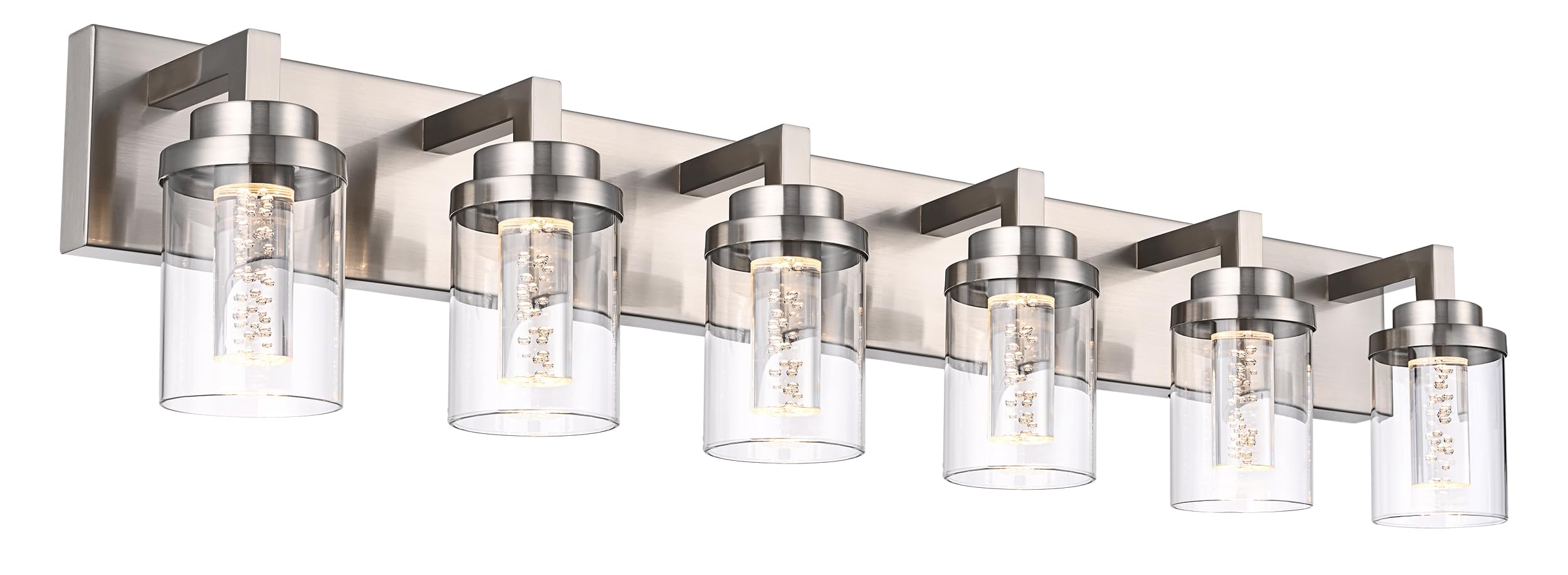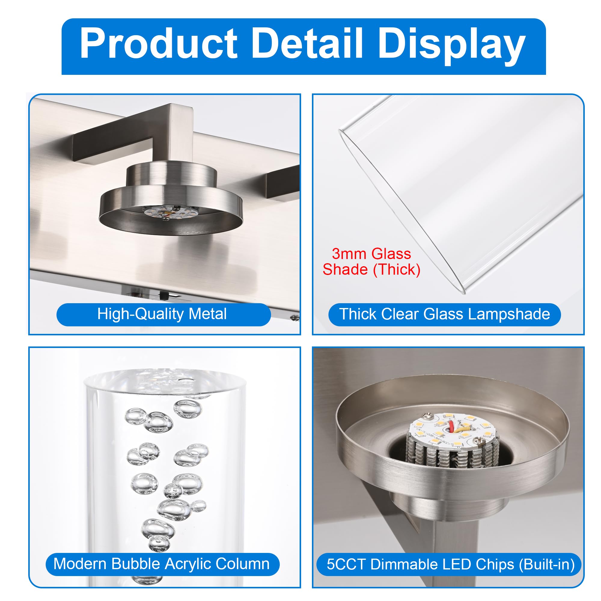 - Upgrade Design: MELUCEE Modern Led vanity light with brushed nickel sleek rectangular back plate matching with bubble crystal column and clear glass shades, reflecting light to a delicate and gorgeous effect, ensures a fantastic light and a popular look for your bathroom, kitchen, dressing room, vanity table, powder room, etc