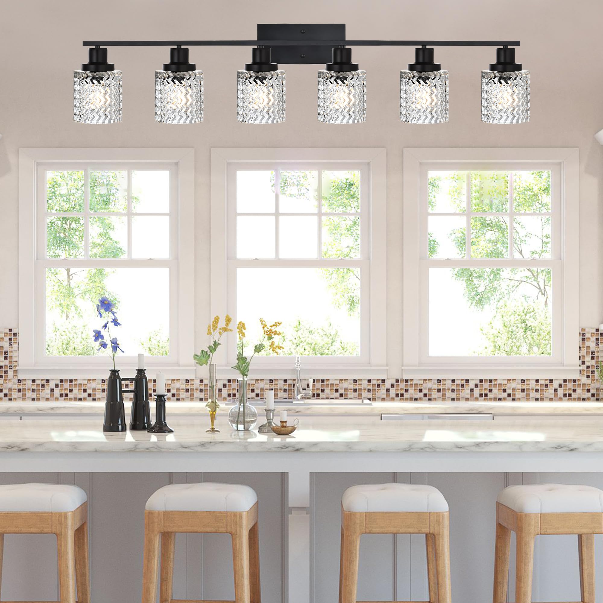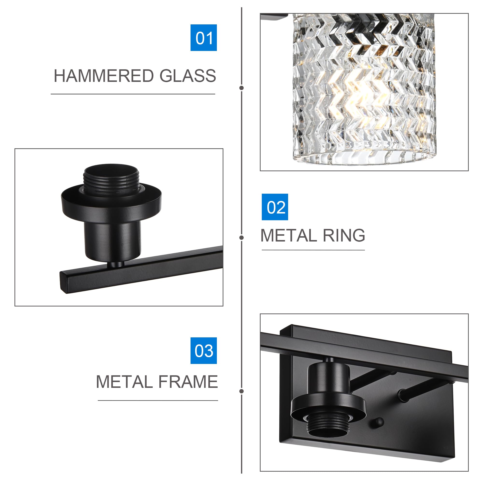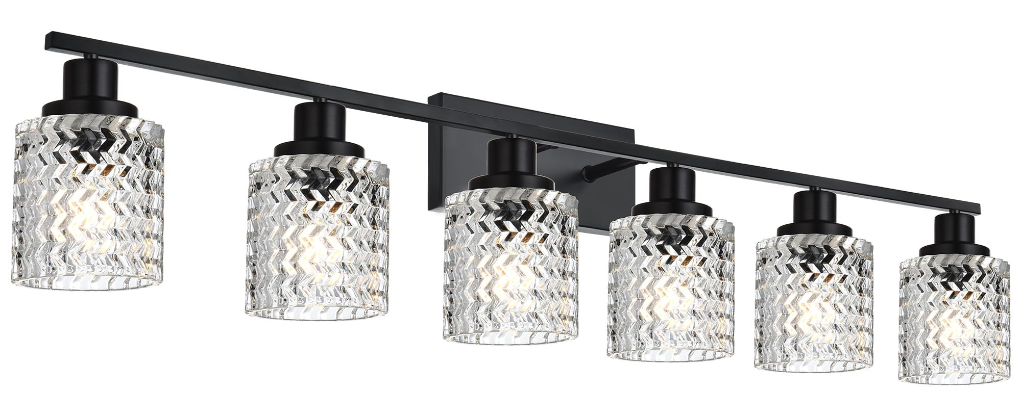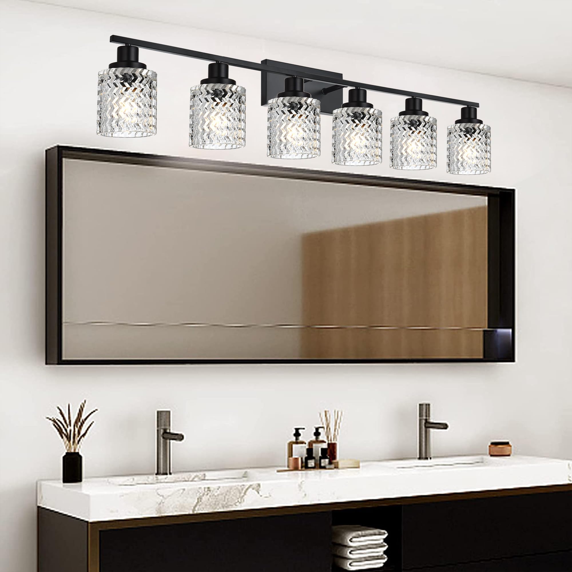 MELUCEE 6 Lights Bathroom Lighting Fixtures Over Mirror Black with Hammered Glass Shade, Vanity Light Indoor Wall Mounted Lamp for Bathroom Bedroom Kitchen
