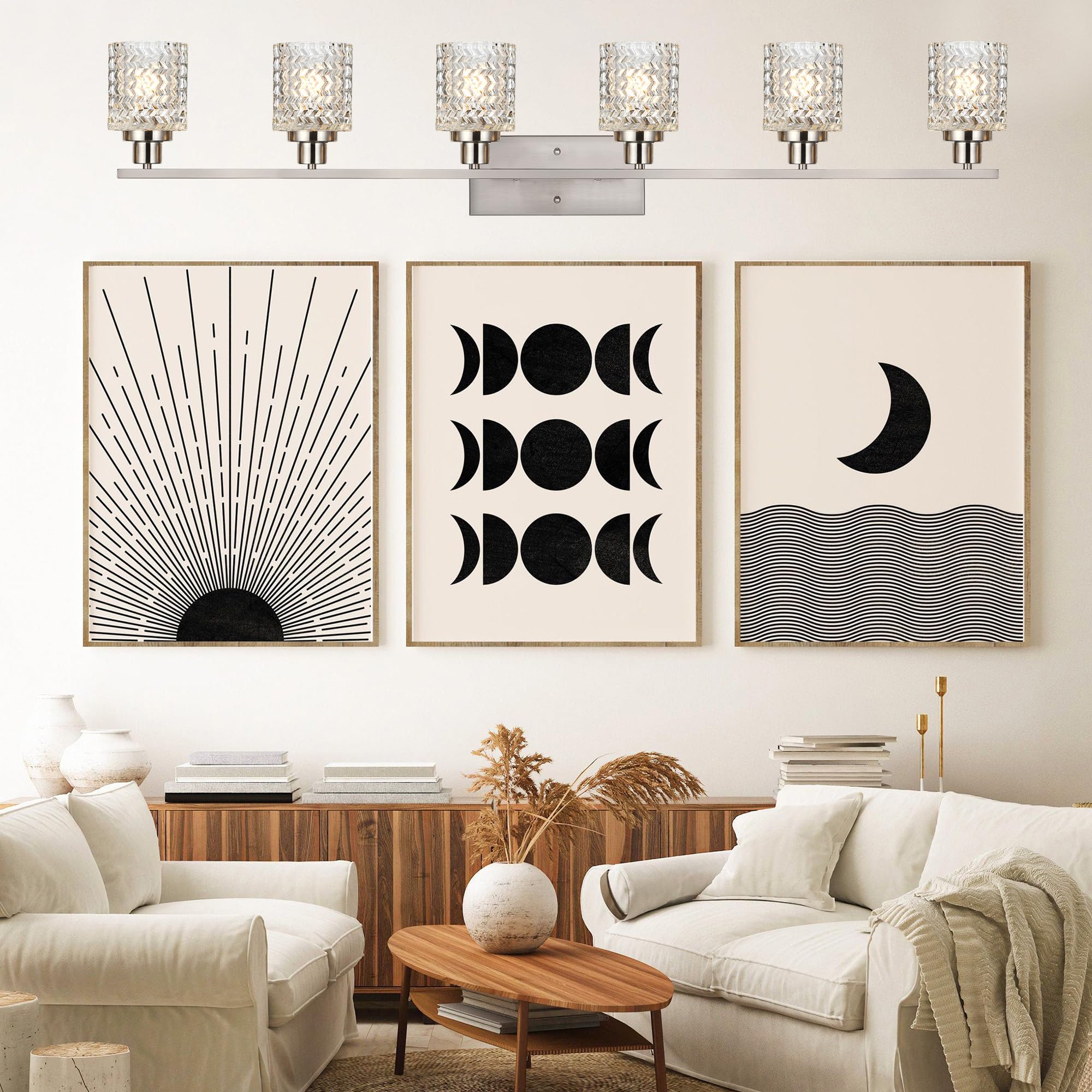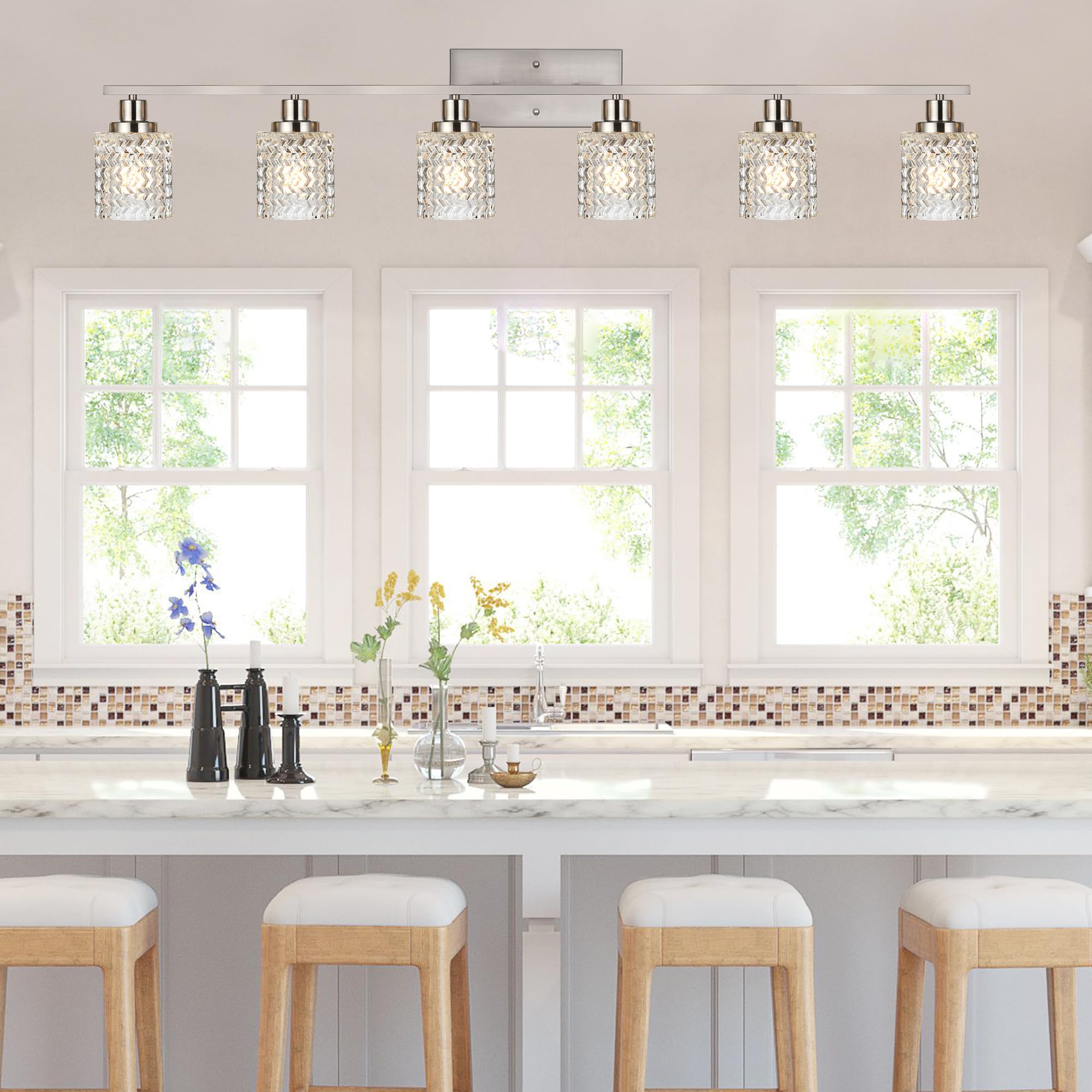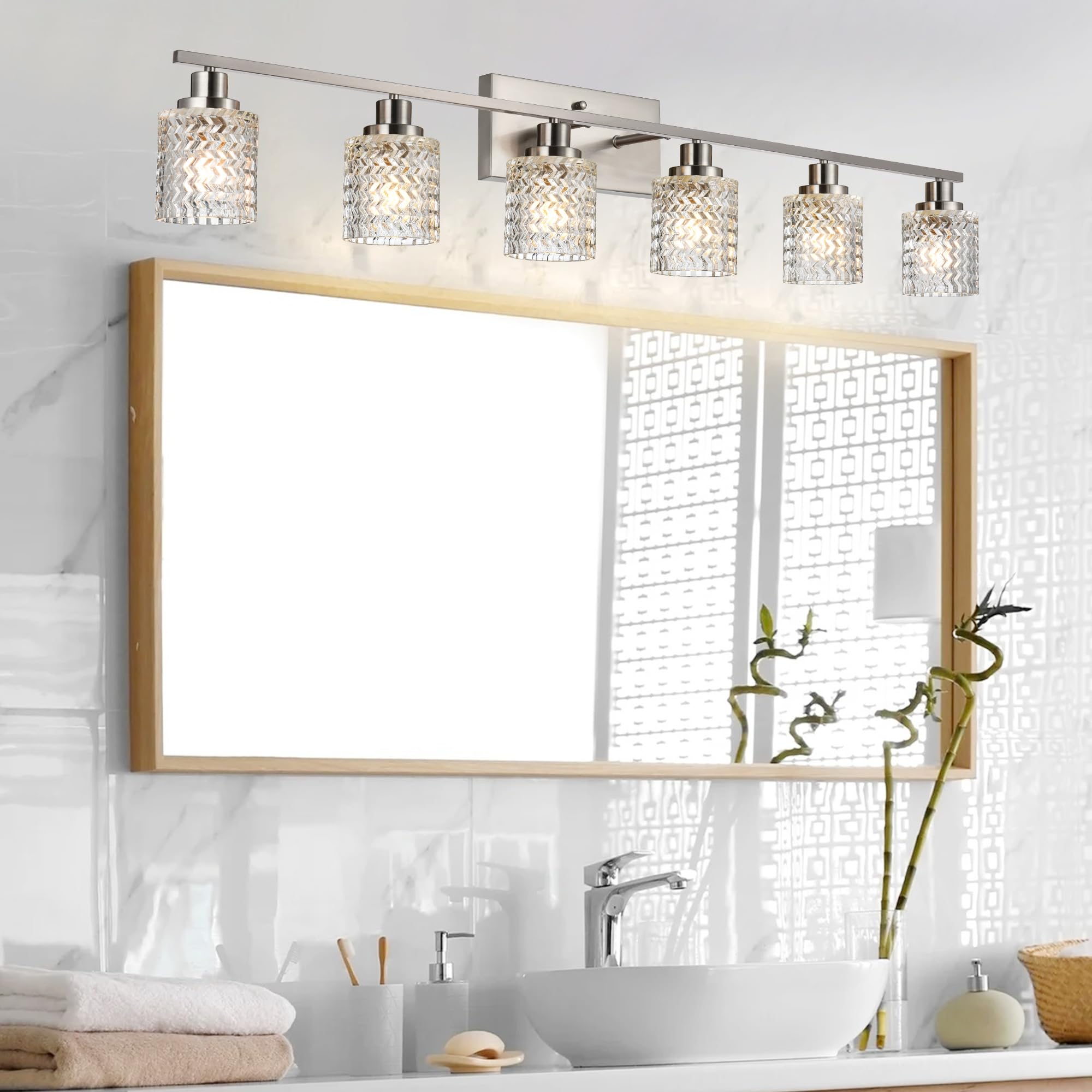 MELUCEE 6 Lights Bathroom Lighting Fixtures Over Mirror Brushed Nickel with Hammered Glass Shade, Vanity Light Indoor Wall Mounted Lamp for Bathroom Bedroom Kitchen